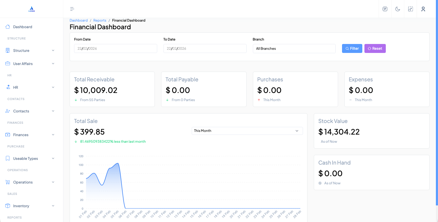 - Comprehensive sales and purchase management with customer and supplier relationship tracking